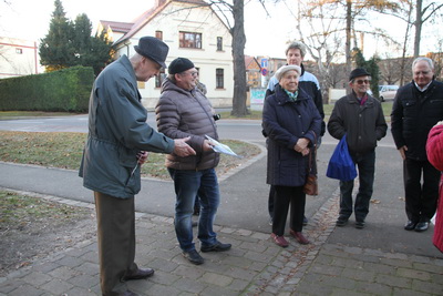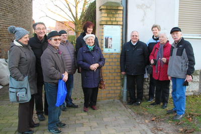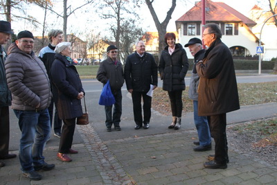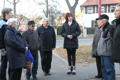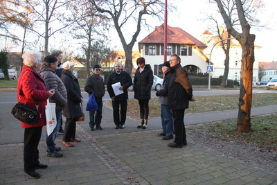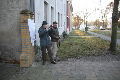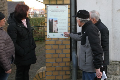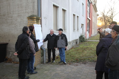 Der 2. Stellvertreter des Vorsitzenden des Altertums- und Verkehrsvereins Querfurt und Umgebung eV Hartmut Lasse (bild Mitte) begrüßte am 29.11.2016 15:30 Uhr Mitglieder und Freunde des Vereins zur Enthüllung einer neuen Hinweistafel für historische Gebäude in der Innenstadt von Querfurt