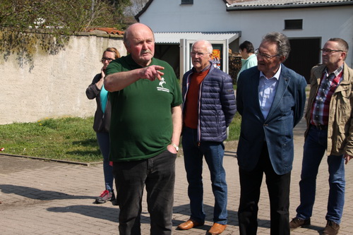 Fachkundig erklärt Herr Rabes den Gästen die historischen Gebäude und Anlagendes Ortes.