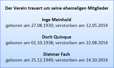 - 2014 wurde vom Vorstand 6 Vereinsmitgliedern zu "runden" oder „halbrunden“