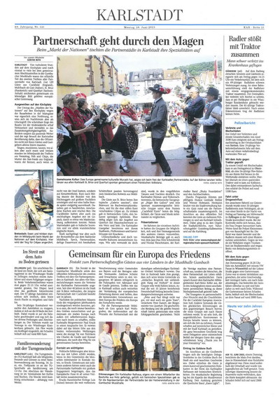 Auf Einladung des Historischen Vereins Karlstadt e.V. weilte auch eine Delegation des Altertums- und Verkehrsverein Querfurt und Umgebung e.V. vom 07. bis 09. Juni 2013 in Karlstadt und nahm an verschiedenen der angebotenen Veranstaltungen teil, natürlich auch am „Markt der Nationen“ auf dem Kirchplatz und am Festakt in der Musikhalle in Gambach.