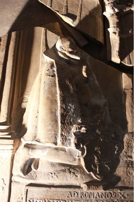 Bei Renovierungsarbeiten im Fußbodenbereich des Altarraumes der Kaufmannskirche entpuppte sich eine zunächst unscheinbare, etwa 2x1 Meter große Sandsteinplatte als ein im Kirchenboden umgekehrt verlegtes Gedächtnisbild. Erfurter Historikern ist es anhand des Todesdatums gelungen, das Bildnis dem Universitätsprofessor für Physik, Mediziner und Dichter Bruno Seidel aus Querfurt zuzuordnen. Er wurde um 1530 in unserer Stadt geboren und starb am 5. September 1590 in Erfurt. Die Sandsteinplatte zeigt Seidel kniend und betend vor dem gekreuzigten Christus. Neben Bibelzitaten findet man auch Seidels Wappen. Es zeigt Atlas mit der Weltkugel. Die Fachleute bescheinigen dem porträthaft herausgearbeiteten Kopf Seidels und der gesamten Darstellung eine vorzügliche Bildhauerarbeit und bezeichnen den Fund als „kulturhistorischen Schatz“ und einen „Glücksfall mit Blick auf die Luther-Dekade“. Für uns Querfurter ist es eine Sensation. Das Werk wird der Werkstatt Hans Friedemanns dem Älteren zugeordnet. Die Erfurter Historiker vermuten, dass die Platte als Epitaph an einer Kirchenwand aufgestellt war und dann zweckentfremdet als Fußbodenbelag verwendet wurde.