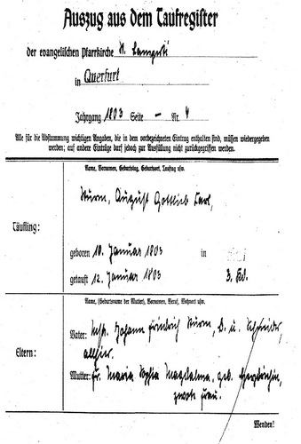 Am 10. Januar 1803 erblickte Karl August Gottlieb Sturm in Querfurt das Licht der Welt.