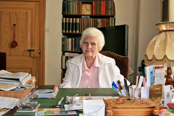 Irmgard Fuhrmann, 90. Geburtstag, an ihrem Schreibtisch