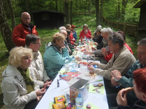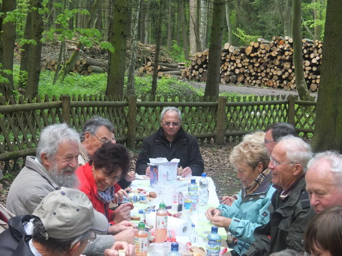 Auch an eine Pause wurde gedacht. Die beiden Stellvertreter, Dr. Bernhard Peitz und Hartmut Lasse hatten für eine "kleine Wegzehrung" gesorgt. Schnell waren Tische und Bänke in der "Waldschule" aufgestellt und gemütlich saß man an einer langen, gut eingedeckten Tafel zusammen. Bei guter Stimmung klang dieser Tag aus.