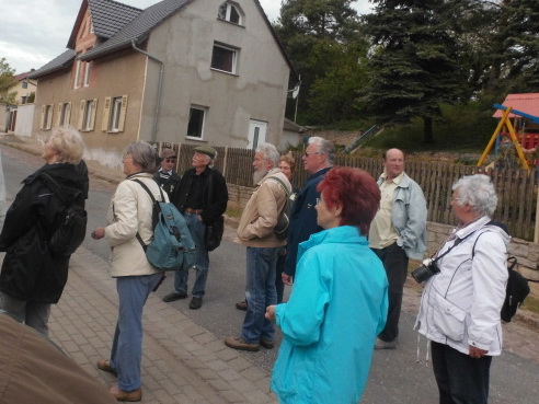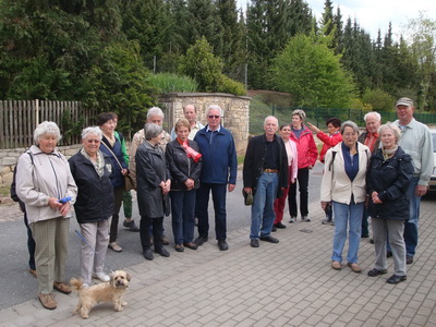 Ca. 30 Querfurter Wanderfreunde und ein kleiner Hund hatten sich am 9. Mai 2015 zur traditionellen Frühlings-wanderung des Altertums- und Verkehrsvereins Querfurt und Umgebung e.V. an der Nord-Ost-Bastion der Burg Querfurt eingefunden.
